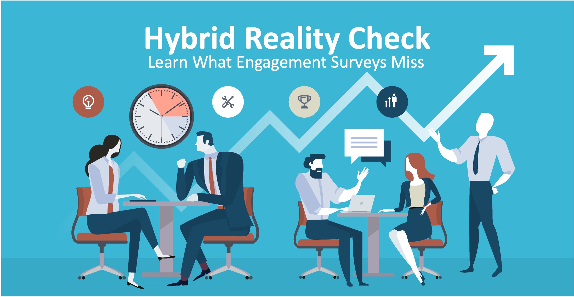 Uncover Hybrid Reality with a Hybrid Reality Check. Discover hidden productivity drains, cultural blind spots, and silent disengagement with an external program of confidential one-on-one conversations with select hybrid employees and a hybrid-specific employee survey.